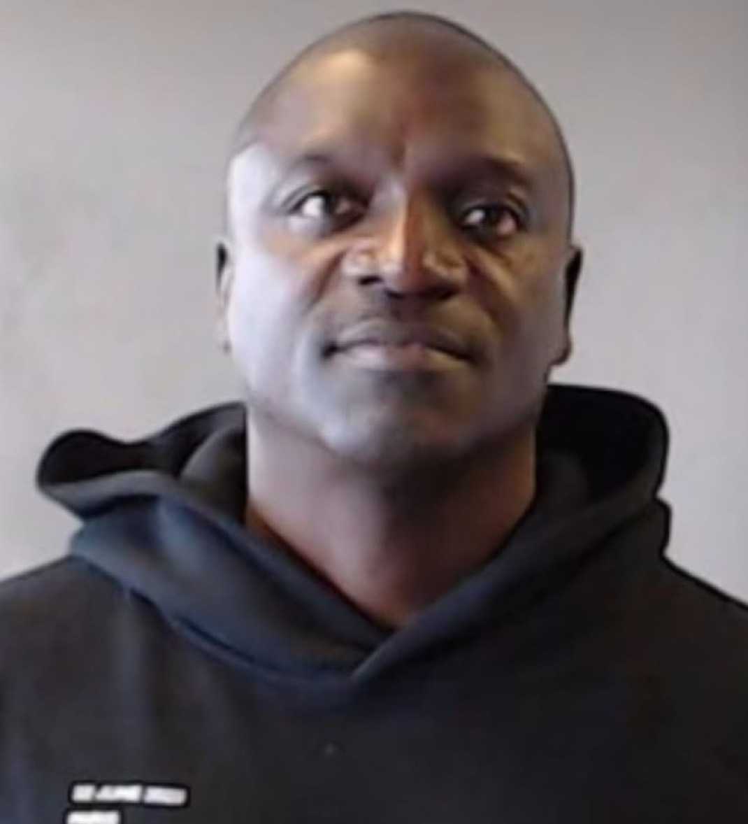 His now-viral mugshot shows a bald, serious-faced Akon staring straight ahead. He wears a black hoodie with faint white lettering across the chest, adding an unexpectedly casual touch to the otherwise grim booking photo.