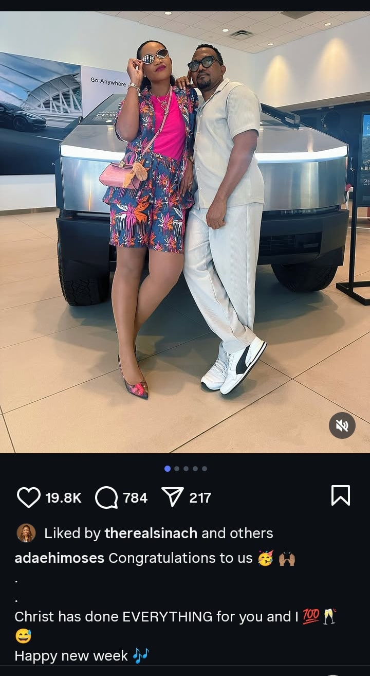 Popular Nigerian gospel artist, Ada Ehi, and her husband have taken delivery of a brand-new Tesla Cybertruck, marking a significant achievement for the celebrated couple.