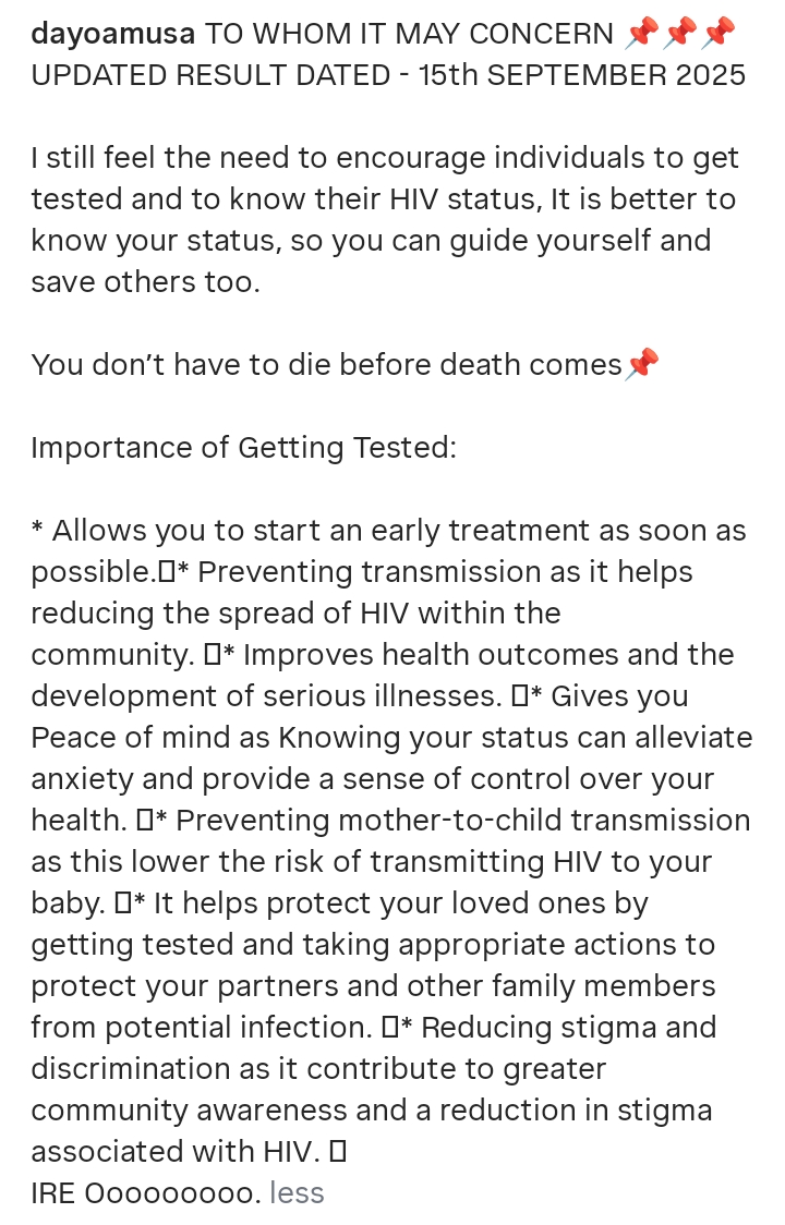 The actress, who has long been outspoken on issues of stigma and health awareness, did not let the scandal slide. Instead, she took a firm stand. On September 15, 2025, she posted an updated HIV test result on her Instagram page. The document was clear and carried the exact date, putting to rest any speculation about her health. In her caption, she reminded fans and critics alike of her earlier awareness campaign in 2019, where she also shared a negative test result.