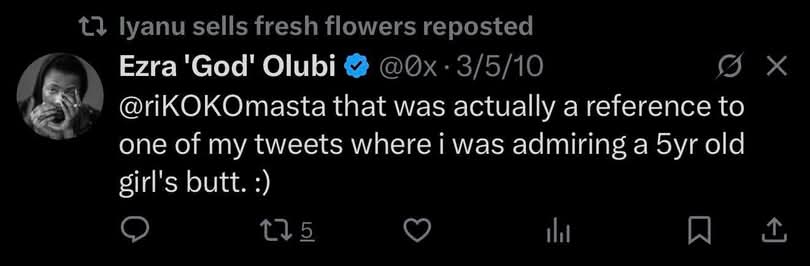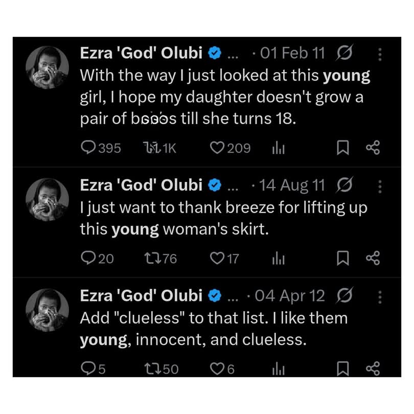 The silence only fueled the fire. Users archived the posts on GitHub, ensuring the evidence wouldn’t disappear. Hashtags like “Ezra Olubi” and “Ezra God” trended for hours.