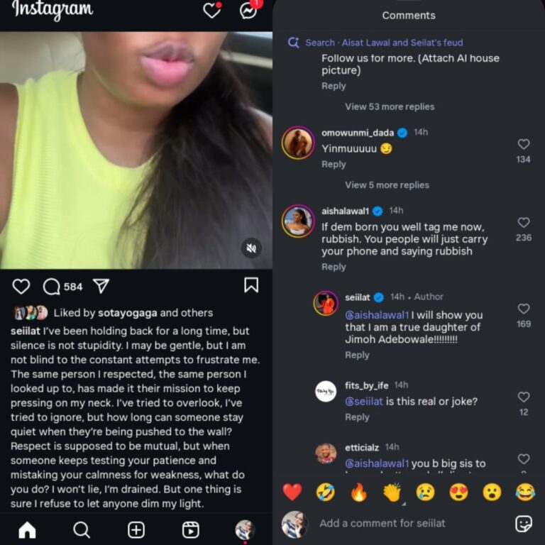 In a fiery clapback, Aisha Lawal took to her page to challenge Seiilat directly, daring her to mention names instead of dropping shades. She wrote: “If them born you well, tag me.”