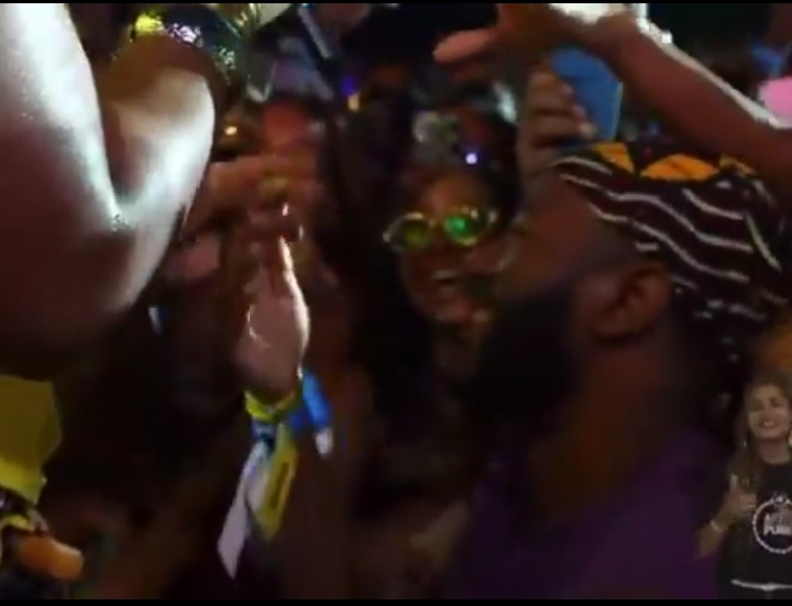 Tems, caught off guard, pulled back with a shy smile. “Carlos, your wife is here and I need to respect her,” she said into the mic, her voice playful but firm. The audience erupted.