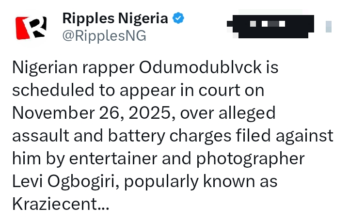 According to multiple credible Nigerian news outlets, the case was filed by singer and photographer Levi Ogbogiri, better known as Kraziecent, who claims Odumodublvck attacked him without provocation while he was taking videos and selfies at an event on December 16, 2024. The shocking part? Kraziecent says the rapper not only hit him but also damaged his iPhone 15 Pro Max during the altercation.
