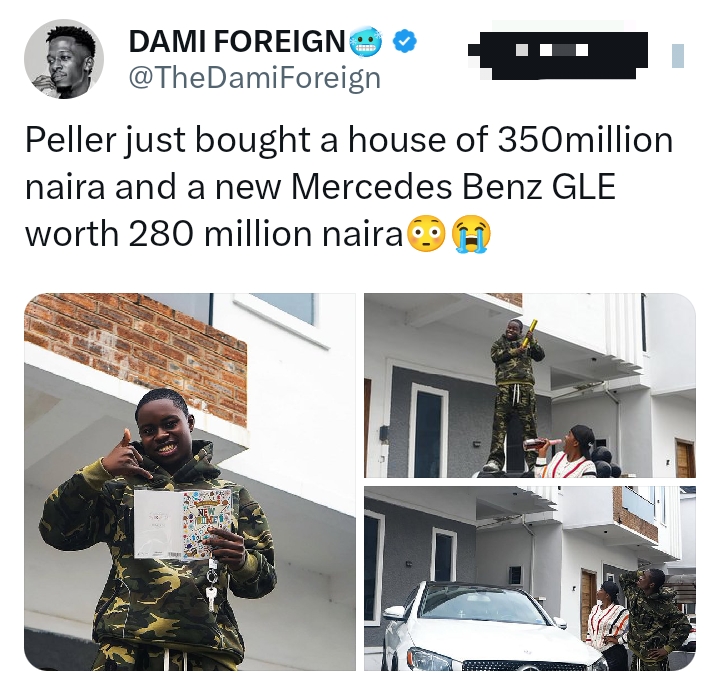 In the end, whether the mansion cost ₦350 million or twice that amount, the real takeaway is that Peller is safe, grateful, and still very much a headline-maker. His story continues to unfold, and as with every rising star, the line between inspiration and gossip remains deliciously thin. For now, though, he seems content to let his new home and his gratitude do the talking.