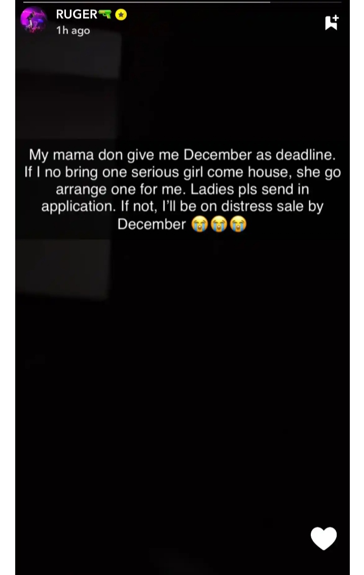 Fans on social media didn’t waste time jumping into the discussion. Some urged Ruger to “hurry up” before his mother takes matters into her own hands. Others teased that maybe the next single he drops should be about love and family pressure. A few even offered themselves as volunteers to be introduced to his mum, with hilarious comments flooding his pages.